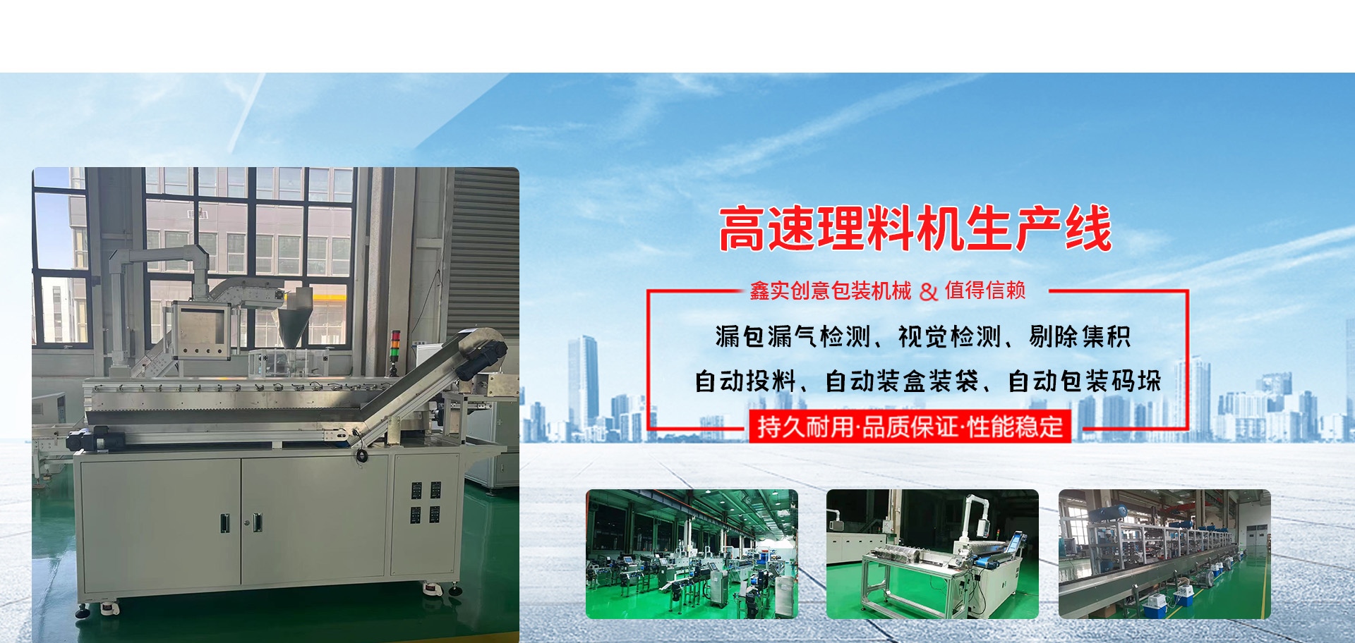 自主研發(fā)產(chǎn)品有食品行業(yè):食品包裝機(jī)、散包高速理料機(jī)、食品高速理料生產(chǎn)線、全自動(dòng)管材包裝生產(chǎn)線、管材包裝設(shè)備、自動(dòng)折盒機(jī)、高速裝盒機(jī)、高速投包機(jī)、高速散包自動(dòng)上料機(jī)、高速包裝機(jī)移動(dòng)式端封、立式枕式自動(dòng)接膜機(jī)、包裝設(shè)備自動(dòng)糾偏儀、打孔器、真空自動(dòng)上料機(jī)、視覺檢測(cè)等多種自動(dòng)化設(shè);建材行業(yè):直管包裝生產(chǎn)線、蓋帽機(jī)、飛行檢測(cè)儀等;公司業(yè)務(wù)范圍涵蓋建材、食品、醫(yī)療多個(gè)行業(yè),客戶遍及上海、天津、浙江、江蘇、山東、河南、四川、廣西等地。